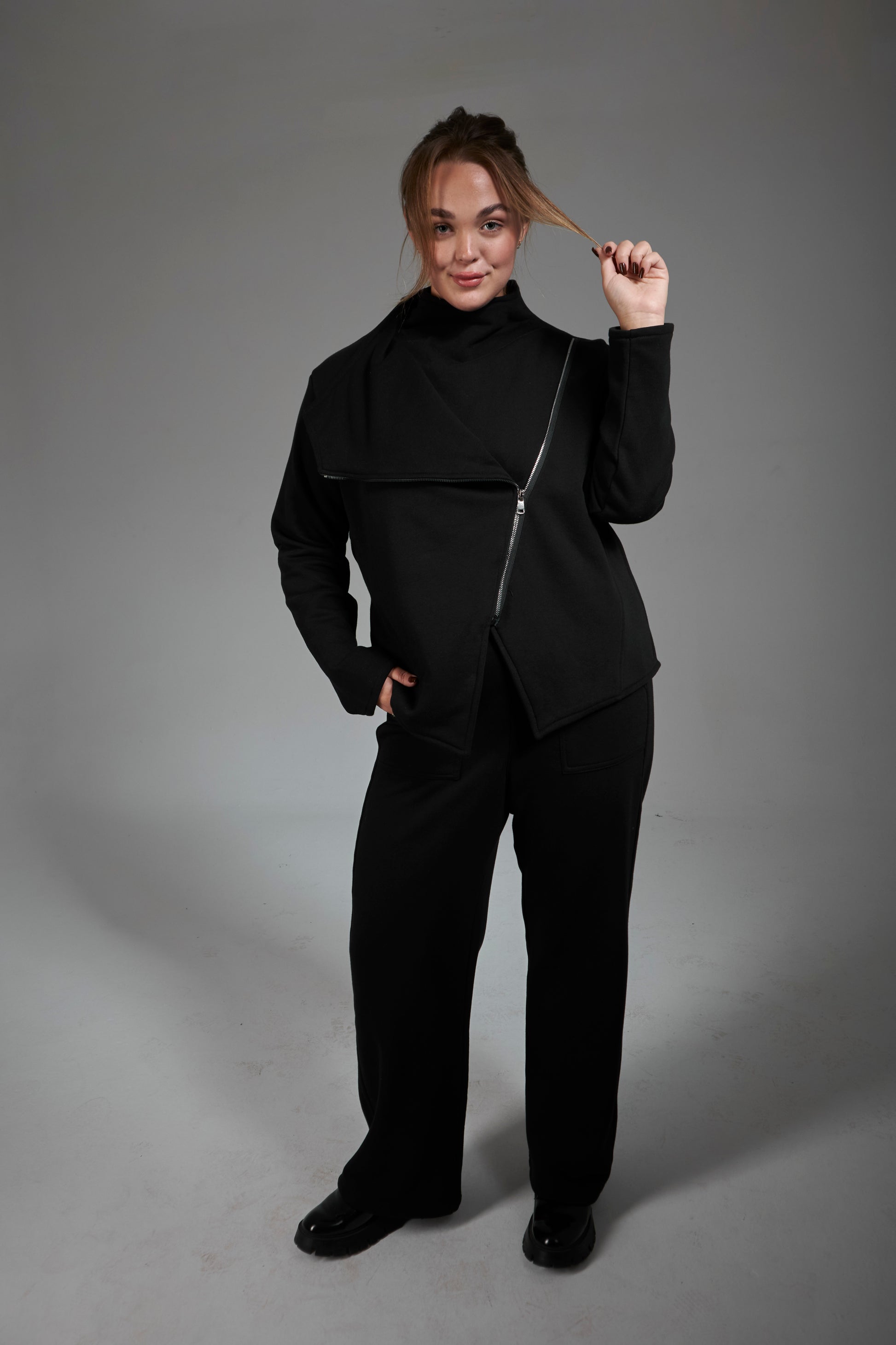 Redefine versatile style with this jacket, crafted from medium-weight sweatshirt cotton fabric for a soft, breathable feel with a smooth, structured drape. Designed with a fitted fit and a sleek zip-up side front, it offers a polished yet laid-back vibe. Effortlessly transitioning from casual days to semi-formal settings, this zip-up jacket is perfect for layering over tees or pairing with the relaxed-fit tracksuit cotton pants for a bold co-ord look. It also stands alone as a timeless wardrobe staple.